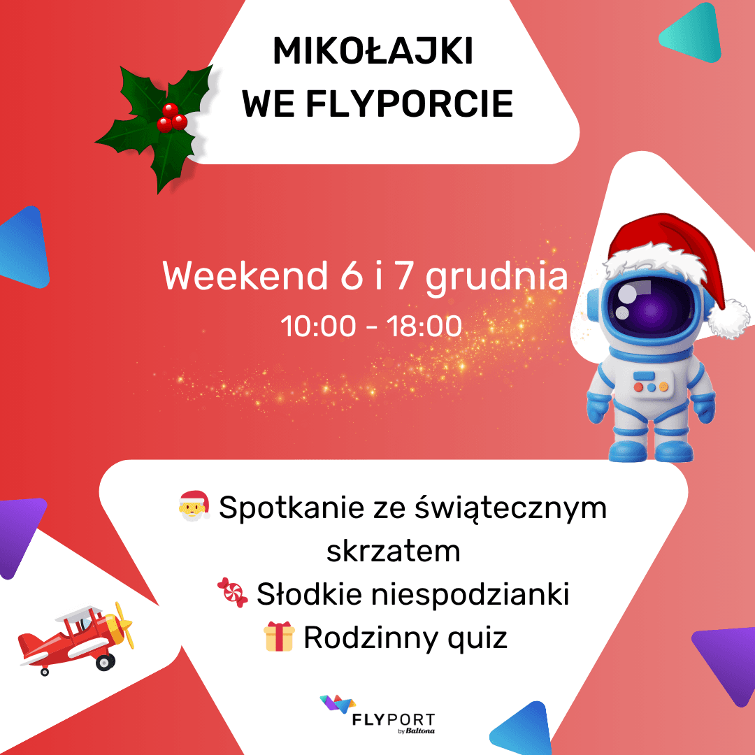 Spotkajcie świątecznego skrzata, poznajcie lotniczo-kosmiczne ciekawostki i wygrywajcie nagrody w mikołajkowym quizie! Mikołajki we Flyporcie to połączenie zabawy, nauki i przedświątecznej magii!